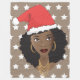 Celebrate the holiday season with this natural beauty and her festive Santa hat over her full, fabulous 'fro. Natural Beauty has a black, curly afro, layered necklaces and gold hoops on a brow background with white stars.