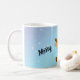 Adorable, Blitzen the Reindeer is holding a red and white diagonally striped pole, like a candy cane, with a flag on the end that says Blitzen. The background is a pretty sky blue with snowflakes falling and it reads "Merry Christmas" on either side of Blitzen. This would be the perfect hot cocoa mug for a child for Christmas! There's one for every reindeer too, so purchase a set if you want! Enough for everyone.
