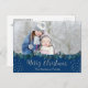 Merry Christmas Blue and Silver Foil Stars Photo Holiday Postcard