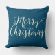 Merry Christmas Blue Beige Christmas Throw Pillow.