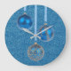 Merry Christmas Blue Glitter Baubles Elegant Wall Clock