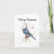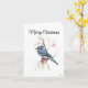 Merry Christmas with painted watercolor blue jay bird with berries. Art by Jenn Steffen, Jenn's Emporium.