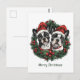 Merry Christmas Boston Terrier Dogs Holiday Wreath Postcard