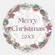 Merry Christmas Botancial & Baubles Wreath Classic Round Sticker