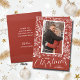 White berries, leaves and dots on a rustic red background (or any colour to match your photo) accent your favourite photo with your family name in chic lettering at the bottom. Your personal greeting and names are printed on the inside. MORE styles in our collection.