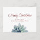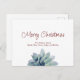 Merry Christmas botanical holiday postcard, with a green succulent and festive typography design. With red customisable lettering, you can add your own information. A festive and fun way to send well wishes to friends and family.