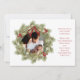 This design features Merry Christmas with merry Christmas holiday wreath with a modern photo family 1 one picture layout, simple elegant family minimalist, rustic green typography script red, a trendy botanical pine nature leaves, stylish trendy brush script font, simple watercolor greenery branches, Christmas holiday red holly berries, green winter foliage holly berry, Christmas holiday photo birth announcement cards