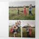 Merry Christmas calligraphy lettering on winter botanical berry wreath, holiday photo collage greeting card in tri-fold. Card features 4 photo template and multiple lines for you custom text. Cute watercolor foliage and berries with line art and golden accents.