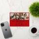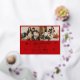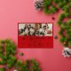 Celebrate Christmas with this stylish holiday card with delicate and shining foil Merry Christmas script calligraphy, customisable an a happy new year message, your family names and random details. Let this Christmas card showcase 2 of your favourite family photos on the front. The back features one more of your family photos, a gold star pattern red frame. Feel free to change this background colour to colour coordinate your photos.