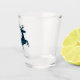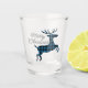 Unique, fashionable and trendy December winter holiday shot glass with a cute image of a blue and black Buffalo Check patterned male deer silhouette and Merry Christmas wish in an elegant stylist typography font script.