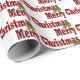 Merry Christmas text in red and black lumberjack text with pine and red berries on white background