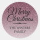 A modern, faux purple glitter ombre Merry Christmas sticker or envelope seal you can personalise with your family name or names. The burgundy glitter ombre pattern fades onto a white background. The text "Merry Christmas" in black is set in modern script. Perfect Christmas envelope seal with modern pattern, sparkle, luxury and glam.