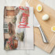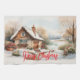 Merry Christmas Cabin in snowy landscape Tea Towel