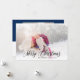Send Christmas cheer with this simple and modern photo card. The front is accented with trendy handwritten calligraphy style text which overlays the photo. Another photo frame on the back allows you to add a second photo. Custom text, on the back, offer a holiday message that you can change to your own.