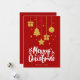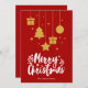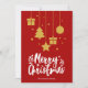 Red Merry Christmas in a fancy decorative script font in white hanging Christmas icons design. This red background colour Christmas card is designed so you can change the colour of the background and also enter your family name or remove it if you wish to just have the design without the text. You can also customise the colour of the words "Merry Christmas" if you like.