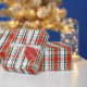 This design features a merry Christmas calligraphy script wrapping paper with a simple red plaid pattern, silver calligraphy stylish trendy font, simple minimalist pattern design, rustic country red green blue, Christmas holiday wrapping supplies, custom customised personalised gift wrap, simplistic elegant classic classy cute, cute creative typography style text, whimsical whimsy cute fun paper