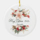 Merry Christmas Calligraphy Watercolor Floral Ceramic Ornament