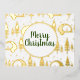 Merry Christmas Camper Pattern Gold Pressed Foil Holiday Postcard