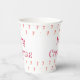 Candy cane text on top of a candy cane pattern highlight these Merry Christmas holiday paper cups!