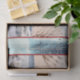 Your message is easily personalised (or delete if not needed). An adorable White Cape Cod home with green shutters is decorated for Christmas. It sits in a snowy landscape with a background of ocean water and border of a snowy forest winter scene. A beautiful collage is overlaid with a soft white ephemera layer that has handwritten calligraphy script and other vintage elements adding texture and elegance. Graphically designed by internationally licensed artist and designer, Audrey Jeanne Roberts, Copyright.