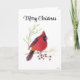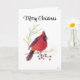 Merry Christmas with painted watercolor cardinal bird with berries. Art by Jenn Steffen, Jenn's Emporium.