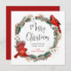 Merry Christmas Cardinal Pine Greenery Wreath Holiday Card