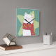 A cute illustration of a cat wearing a red scarf and wrapped in Christmas lights