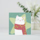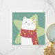 A cute illustration of a cat wearing a red scarf and wrapped in Christmas lights