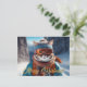 Merry Christmas greeting. Cat skiing on the snowy alps