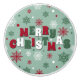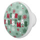 Merry Christmas colourful text design with snowflakes decoration on green background