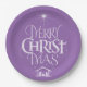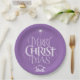 Merry Christmas Christian Calligraphy Chalk Purple Paper Plate