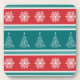 Merry Christmas illustration with Christmas tree and snowflakes decoration on red, white, blue and turquoise striped background