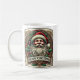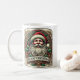 A festive mug featuring a Christmas-themed emblem with Santa Claus, holly leaves, and classic holiday patterns, perfect for spreading seasonal cheer with every sip.