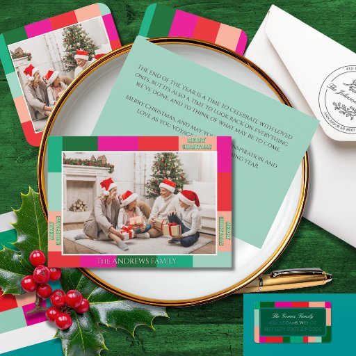 Merry Christmas Colour Block Photo Holiday Card