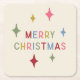 Merry Christmas Colourful Mod Typography Square Paper Coaster