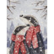 Merry Christmas Couple Badger Illustration Postcard