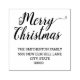 Christmas holiday rubber stamp with text, "Merry Christmas" in a beautiful cursive script font, your family name, and address.