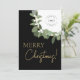 Personalise this vertical flat card with your own business logo, customising the message and company name sign-off to make it truly unique to your brand. The card features an elegant and stylish modern wreath illustration in gold, green, and white, accompanied by the words "Merry Christmas" in a beautiful gold colour hue.