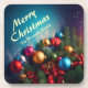 Merry Christmas Custom Personalise Text beverage coaster. Colourful decorations on a deep blue background. Personalise this beverage coaster with your own text. Merry Christmas & A Happy New Year from InfinityDigitalArt