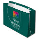 Your Own Text Merry Christmas Happy New Year Hand Script Family Name Add Your Business Company Logo Or Image Photo Here Elegant Modern Custom Template Pine Tree Green & White Promotional Glossy Large Gift Bag.