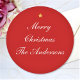 Merry Christmas Custom Text Red Chic Classic Round Sticker