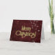 Merry Christmas in gold lettering over sparkles and dark red texture. Inside text can be customised to give your personal message.