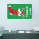 This cloth banner is green with a cute bearded gnome in the top of a red and white Christmas stocking surrounded by candy canes and clusters of holly leaves with red berries. Customise the Merry Christmas text with the template.