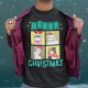 This cute and charming holiday shirt features "Merry Christmas" in green font and four different cats in various winter gear, including antlers, mistletoe, a Santa hat, and a scarf. Great gift for your feline-loving friends!