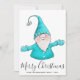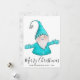 Merry Christmas Cute Gnome White Teal Blue Modern Holiday Card