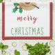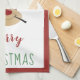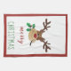Merry Christmas Cute Reindeer Mistletoe Red Green Tea Towel