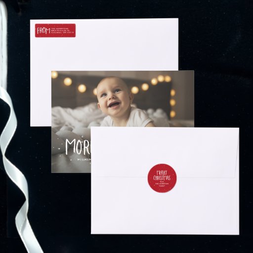 Say a cute Merry Christmas and give your gifts or mail a personalised touch with this holiday stamp. Featuring a hand-drawn Merry Christmas surrounded by dots and stars, this Christmas stamp also has room for a family name or other custom text. This stamp is great for Christmas card envelopes or for making your own Christmas gift tags. Find coordinating Christmas wrapping paper, holiday cards and more in the collection by Lea Delaveris Design.