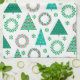Merry Christmas Cute Wreaths & Trees Tea Towel