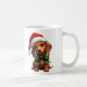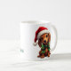 Merry Christmas Dachshund Puppy with Christmas bow and Santa hat.