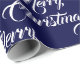 Merry Christmas dark navy blue and white custom script calligraphy elegant gift Wrapping Paper.